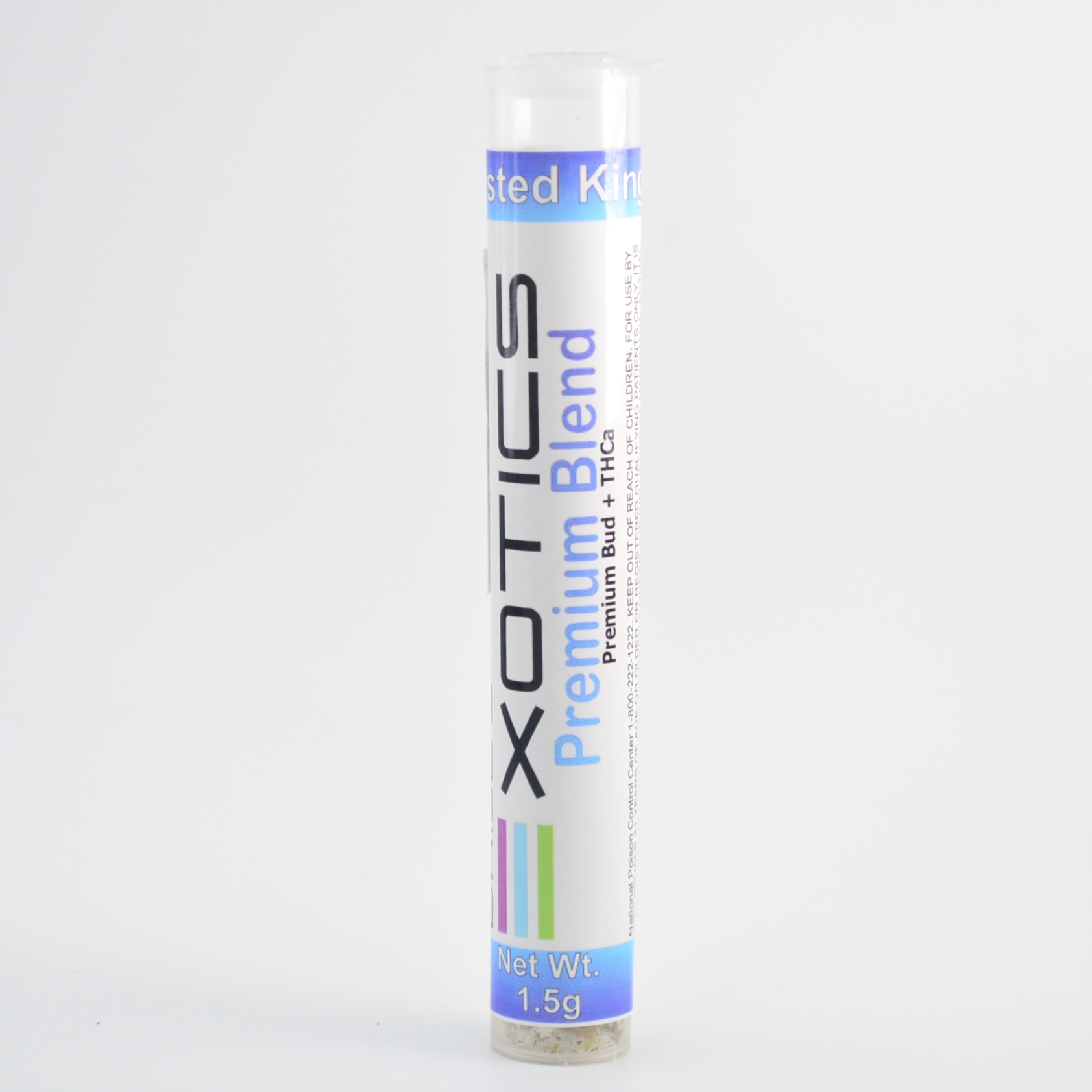 An Indica-Hybrid premium, high-potency, infused pre-roll designed for an enhanced smoking experience. It is part of the "Exotics" line, which features high-quality, aromatic flower. Contains ground flower infused with THCA concentrate, specifically THCA diamonds.